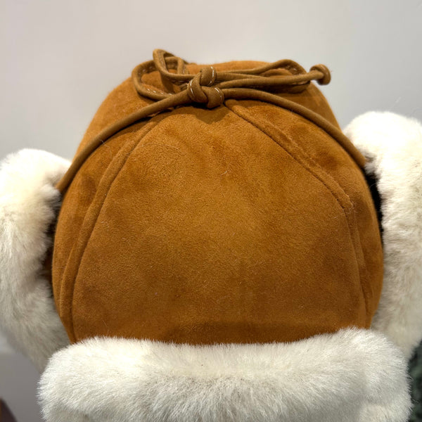 This classic unisex design can't be beaten for warmth on the coldest winter day. The Mountie is handmade in Canada by Sheared Comfort and made out of 100% sheepskin. The top crown shows the suede side of the skin. It also has cozy fleece on the inside. The flaps are fully functional and covered in attractive medium length sheepskin. They attach on the top of the crown with a leather lace that can be untied to lower the flaps over your ears, and the back turn up further over the back of your neck to make you invincible.
